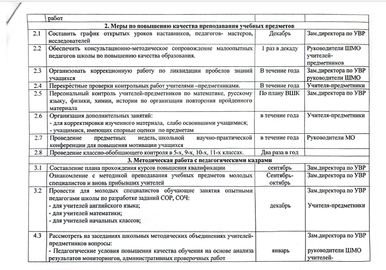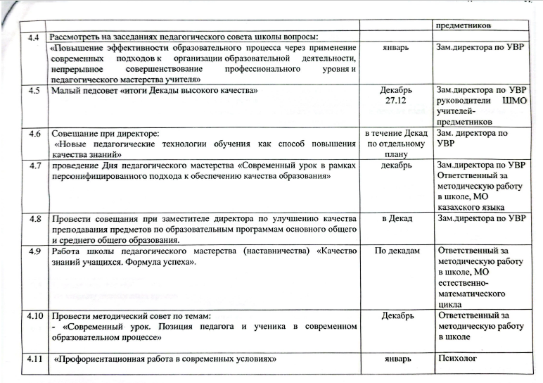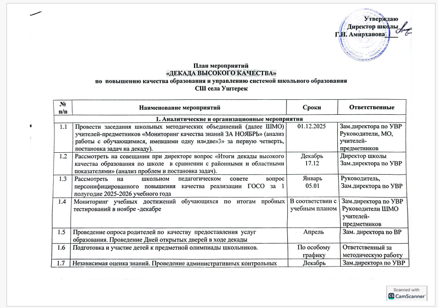 План мероприятий «ДЕКАДА ВЫСОКОГО КАЧЕСТВА» по повышению качества образования и управлению системой школьного образования СШ села Уштерек Posted on 03.12.202503.12.2025 By admin Әдістемелік жұмыс
